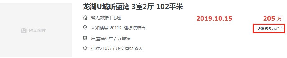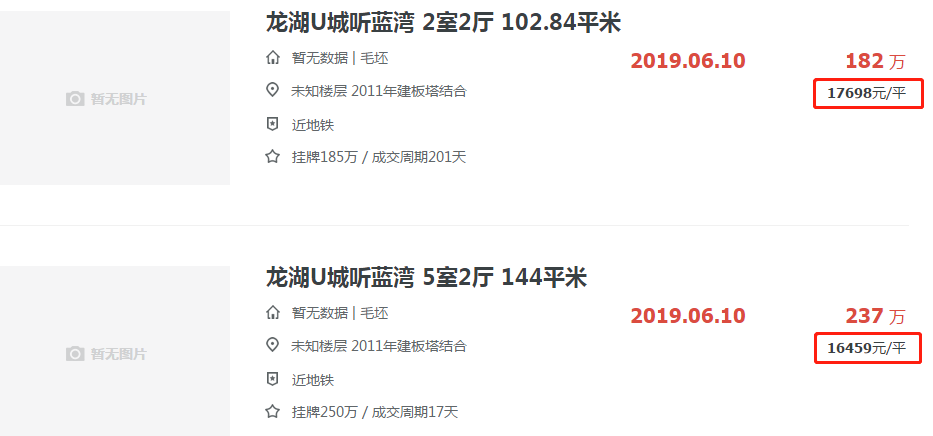 这周边房价是个什么水平呢,我一查链家的二手房数据,差点把我吓一跳:带小区的龙湖二手房平均在建面15000-18000之间。