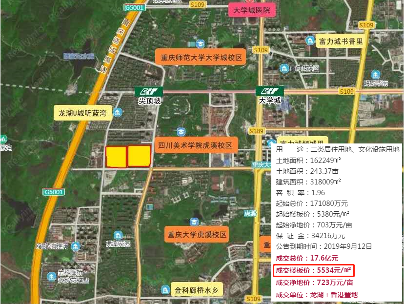 学樘府的离U城天街很近,地铁站过去也只有600米;我查了一下手机,这块地是2019年9月龙湖和香港置地以5534元/平的楼面价拿下的,总共243亩;