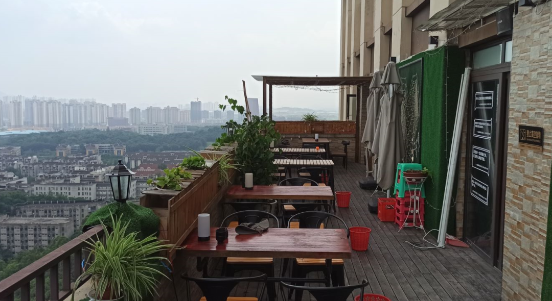 还好狗哥对附近门清,带我来到了旁边的一个空中咖啡店;