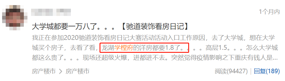 随后,在重庆某楼市论坛上,出现了大量的热帖,说这里的房价要上1万8,甚至还有说建面卖1万9的,把吃瓜群众吓得不轻;