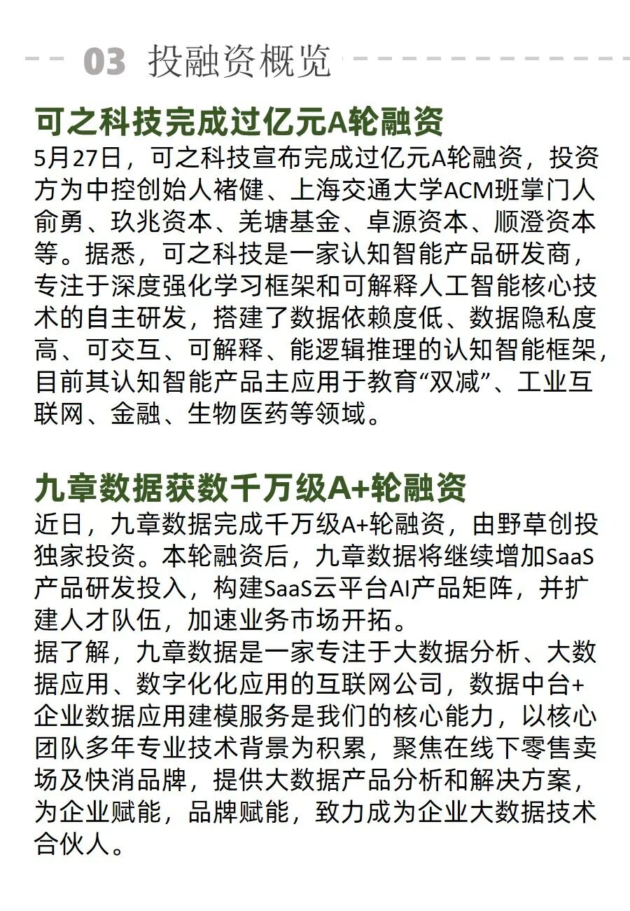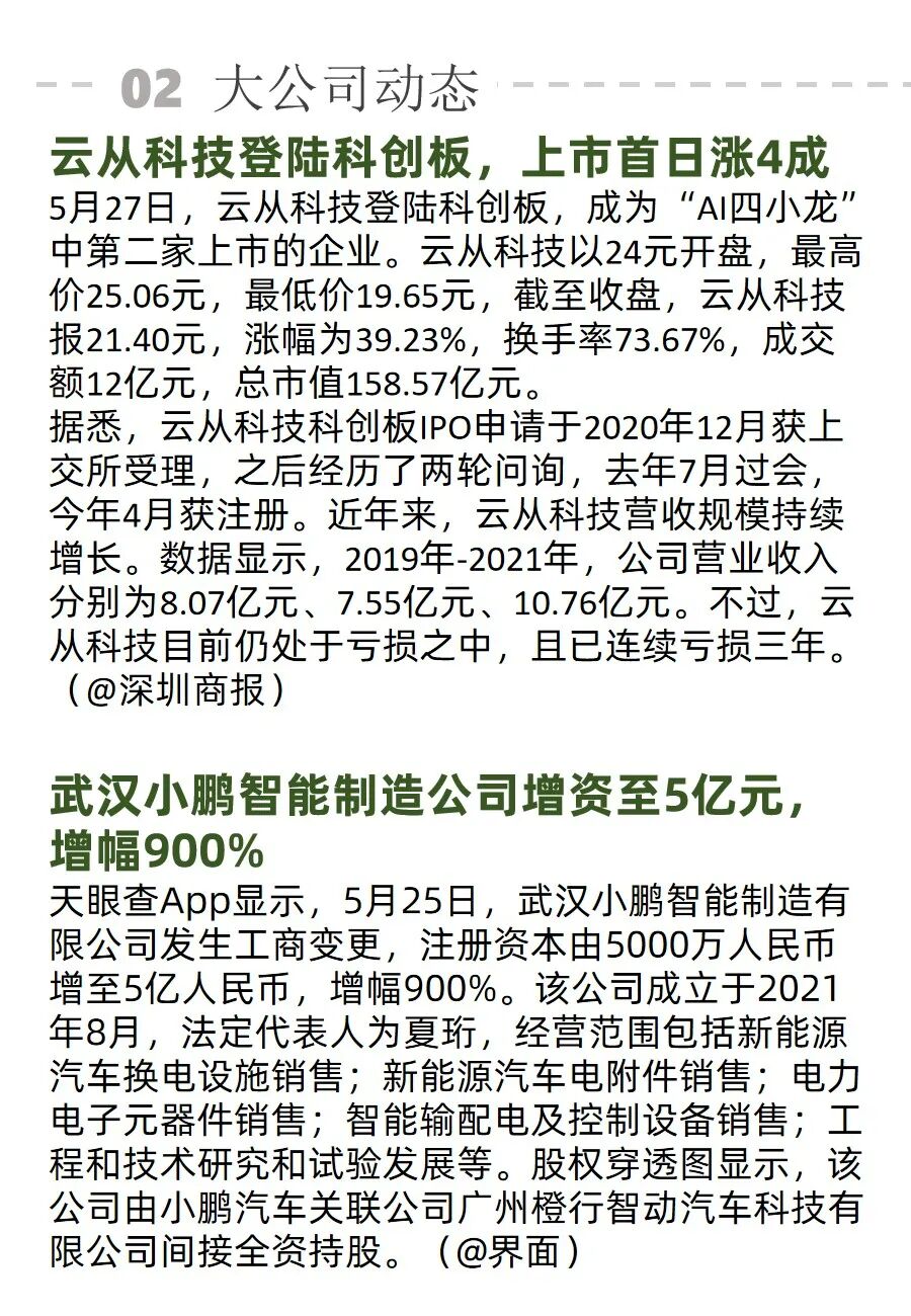 以下是 2022 年 5 月 24 日至 5 月 31 日人工智能行业周报: