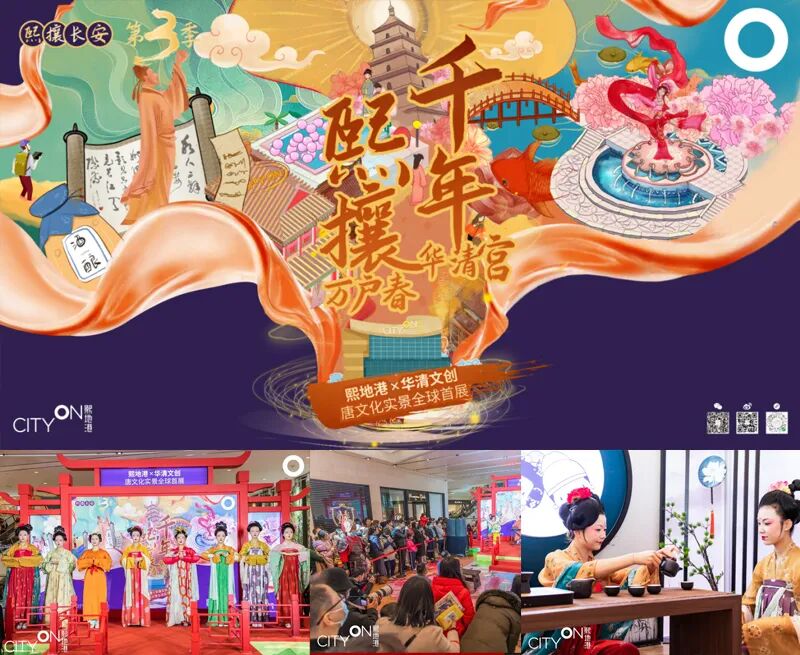 2021年则是熙攘长安的第三季“千年华清宫·熙攘万户春”全球首场实景主题IP展。羽衣琵琶、古筝乐坊、皇家箜篌、御式茶道、御式花道、御式香薰六大主题场景缩影在熙地港中被依次还原,沉浸式带领消费者穿越千年梦回大唐。