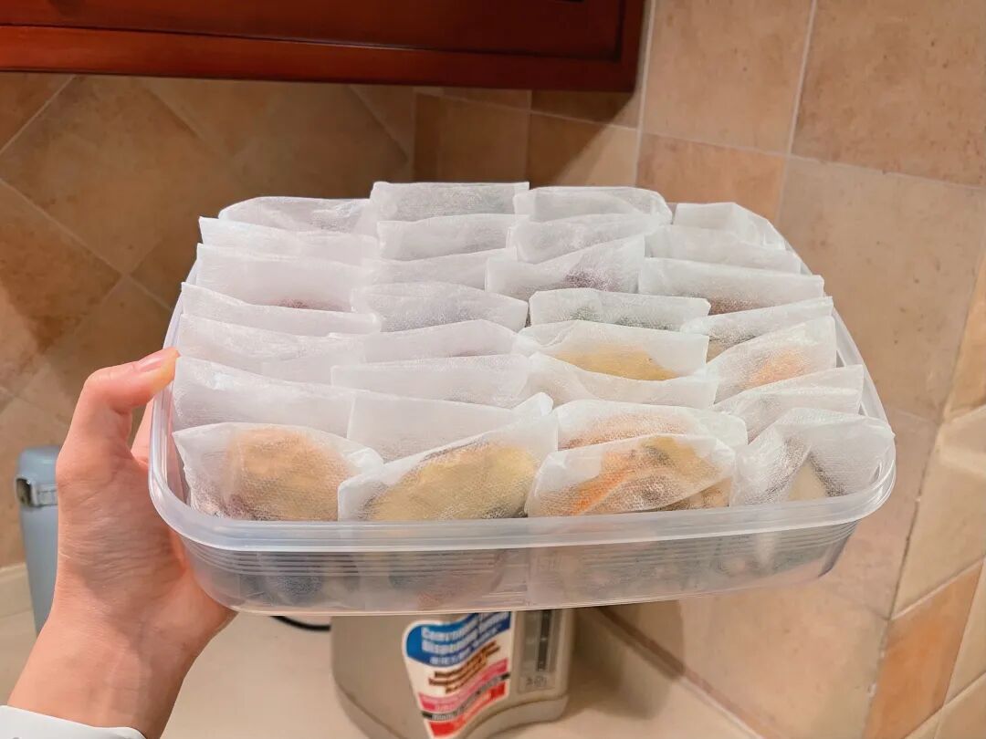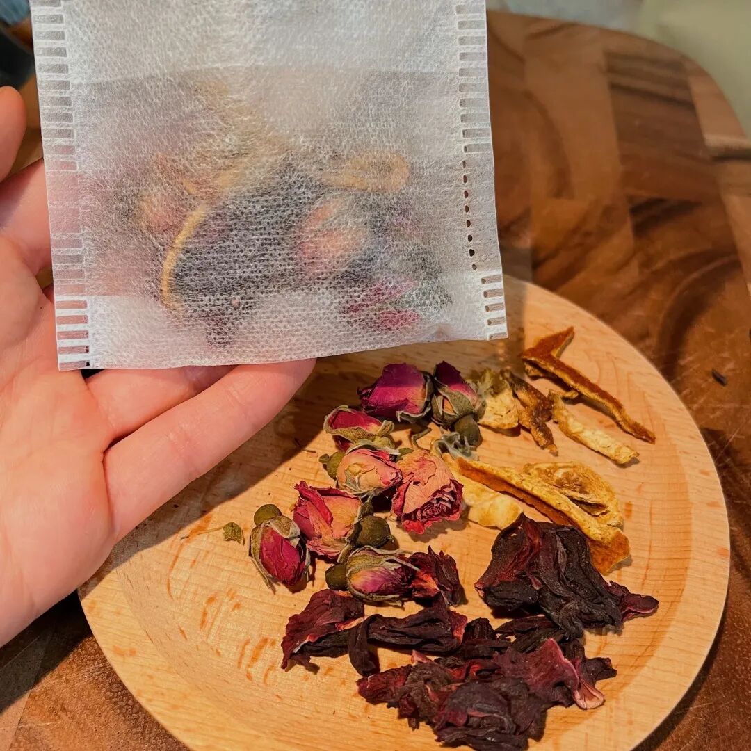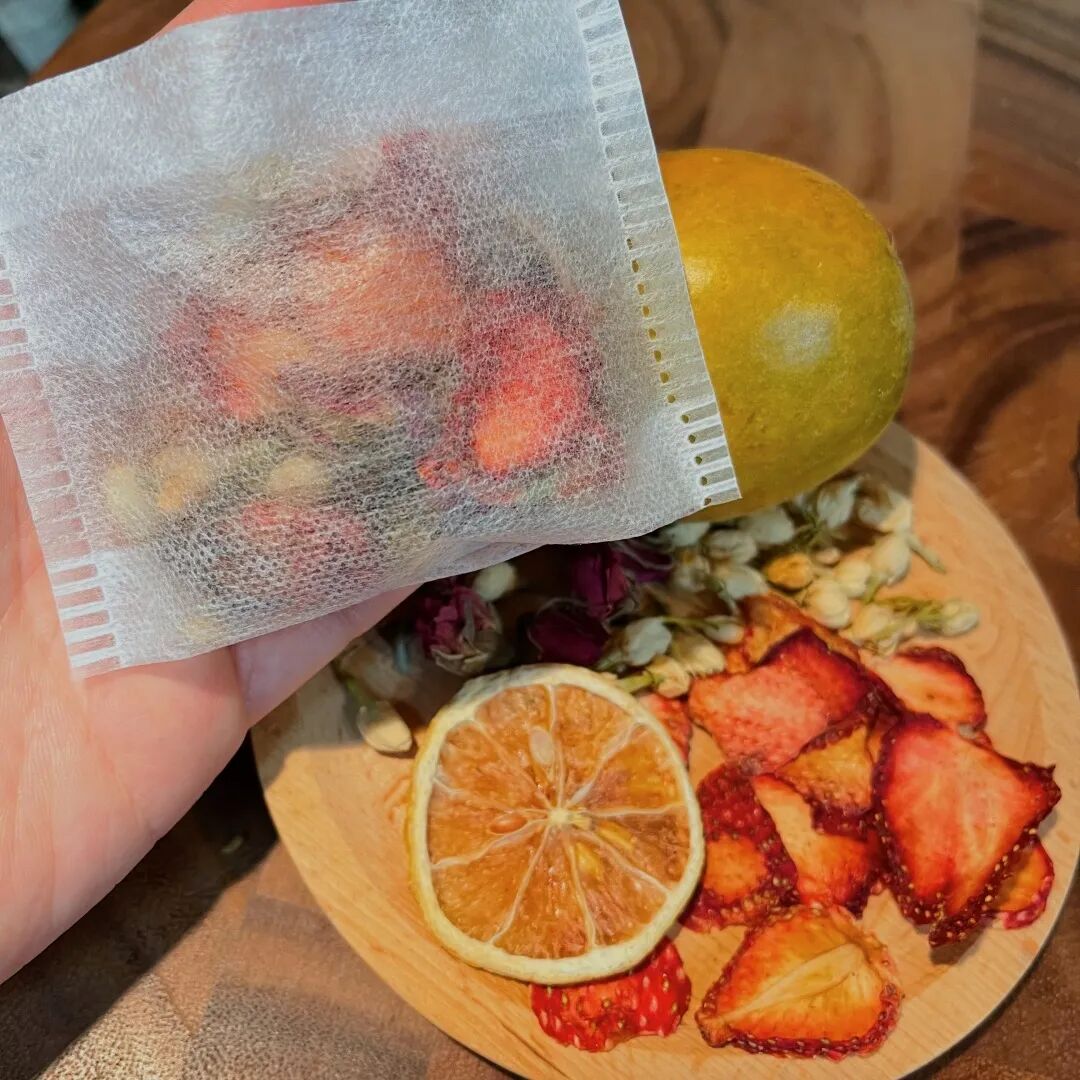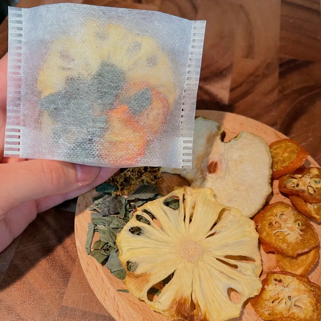 这样就很方便外出携带了。 主要网上很多袋泡茶为了让茶香更浓郁,都是加了很多香精的。 自己做的会更放心一点,原材料也更好。 之前和大家科普了好多次多喝水真的很有用,那很多姐妹在底下留言说戒不掉饮料啊,白开水太没味道了之类的。 所以今天这期呢也分享了很多好喝的水果茶,都是天然的水果干作为原材料的。 不管是冷泡还是热泡都很好喝!