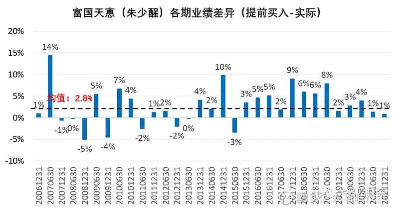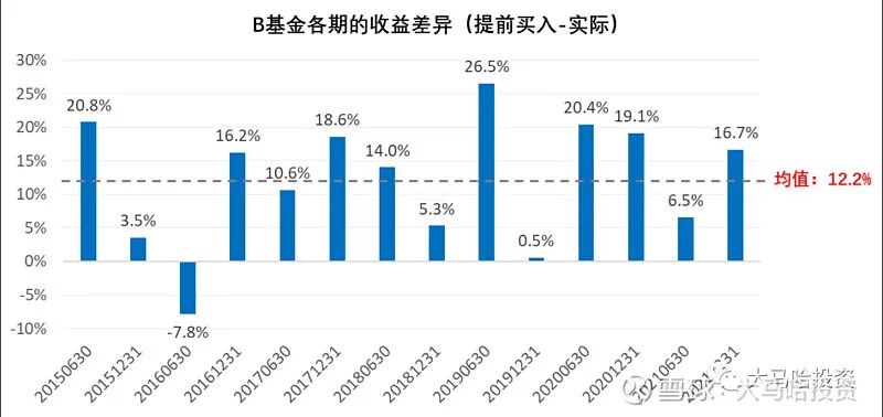 收益差异 =股票持仓在过去半年期间的涨跌幅(提前买入)-过去半年期间基金涨跌幅