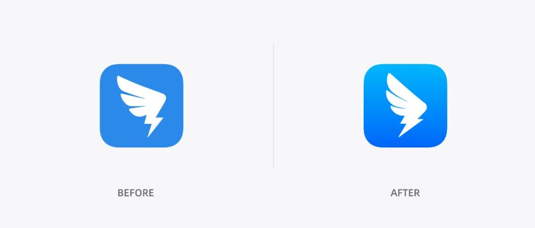 大家发现它的变化了吗? 图形部分它像一只翱翔的鹰,原本是滑翔的姿态,现在变成了俯冲。