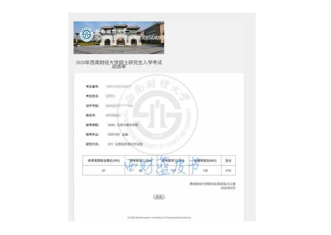 2020年西南财经大学证券与期货学院金融专硕一战初试416分经验分享