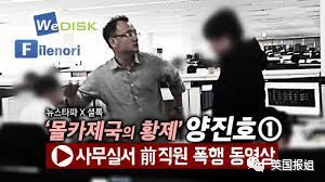 2018年,韩媒曝光的一段视频在互联网上疯传,在不到一分半钟的视频里,杨金浩双手叉腰当众施暴,几次狂甩IT部门人员巴掌、猛击后脑勺,逼人下跪道歉。