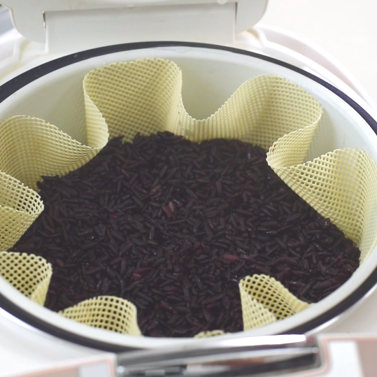 提前一天把150g紫米洗净,冷藏浸泡一晚。