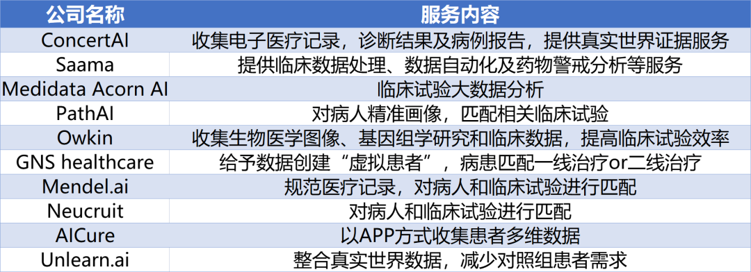 除此之外,临床试验中的方案设计、数据收集、患者招募、方案的运营等,都成为AI可介入的环节。