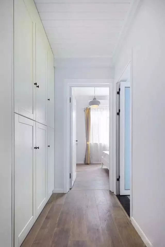 拆掉过道的墙体设计一个嵌入式的到顶储物柜,增加收纳空间。