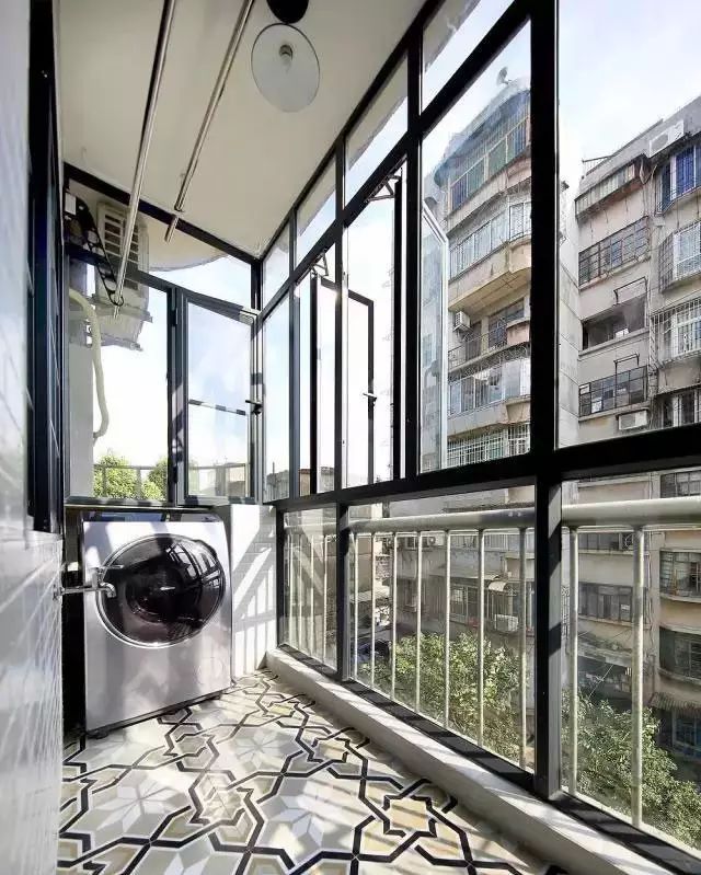 阳台用透明玻璃窗户做成可开放、封闭的空间,减少噪音和灰尘。