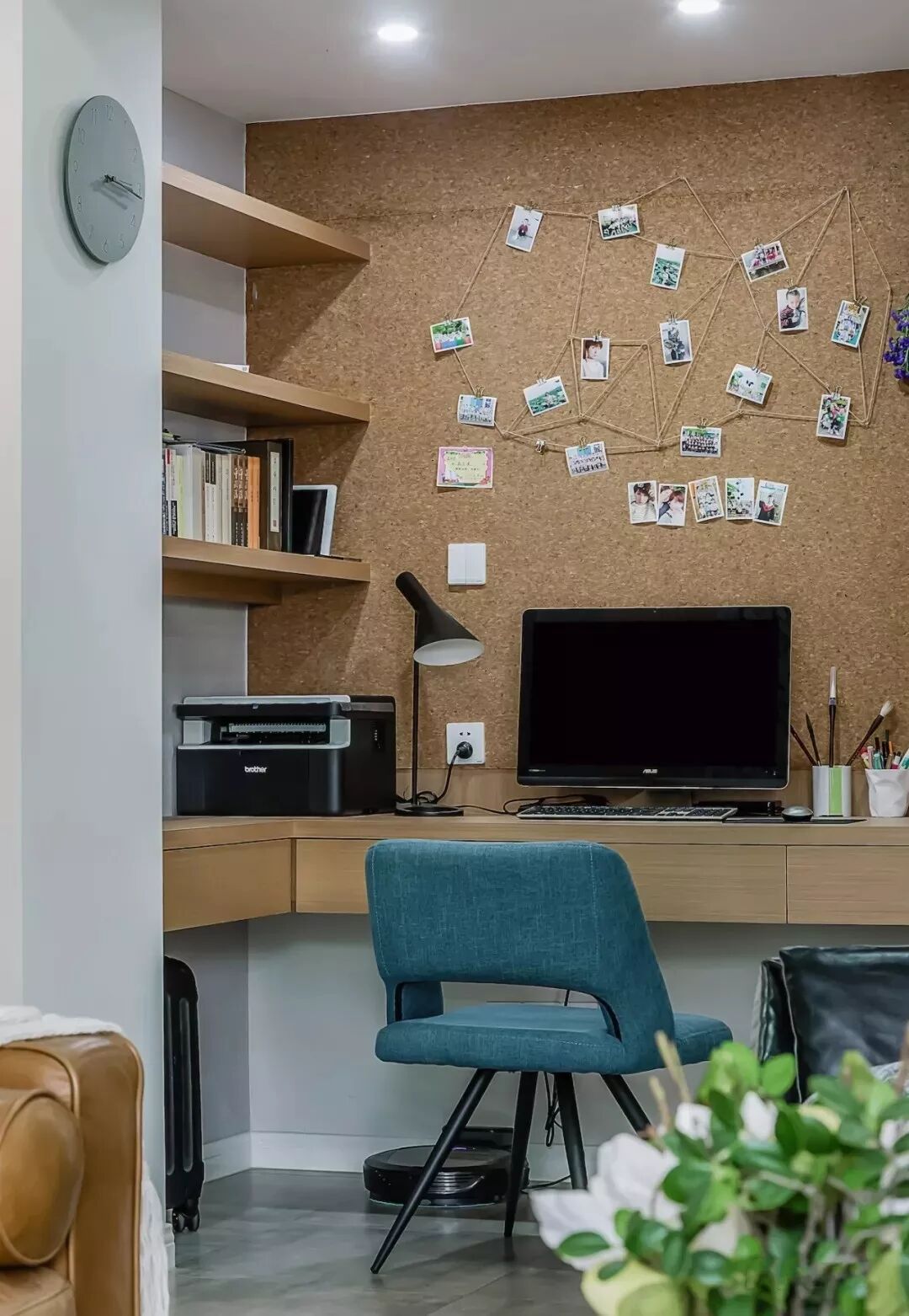 有一个开放式书房设计在客厅与餐厅的过道处,墙角充分利用起来,没有浪费一丁点的空间。