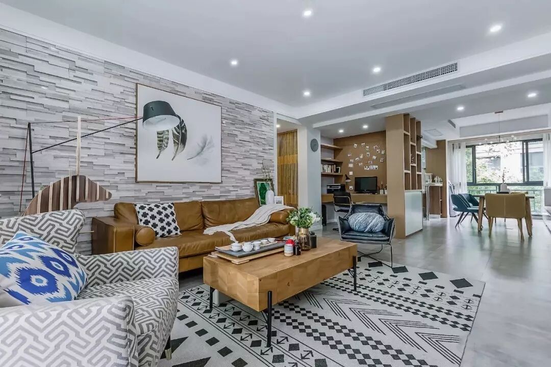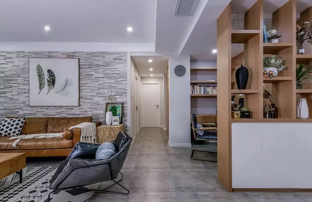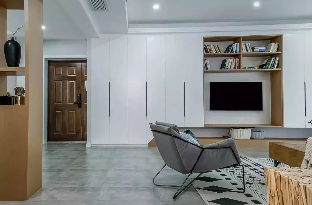 今天小编给大家介绍的是一个120平的开门见厅户型,一进门就能看到一片开放式领域,原木柜不仅起到隔断的作用,同时储物功能也是相当强大。