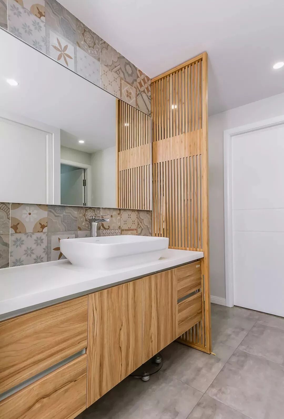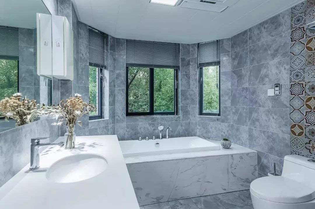 干湿分离的卫生间,将洗手台放在了门外,整体环境超轻盈。