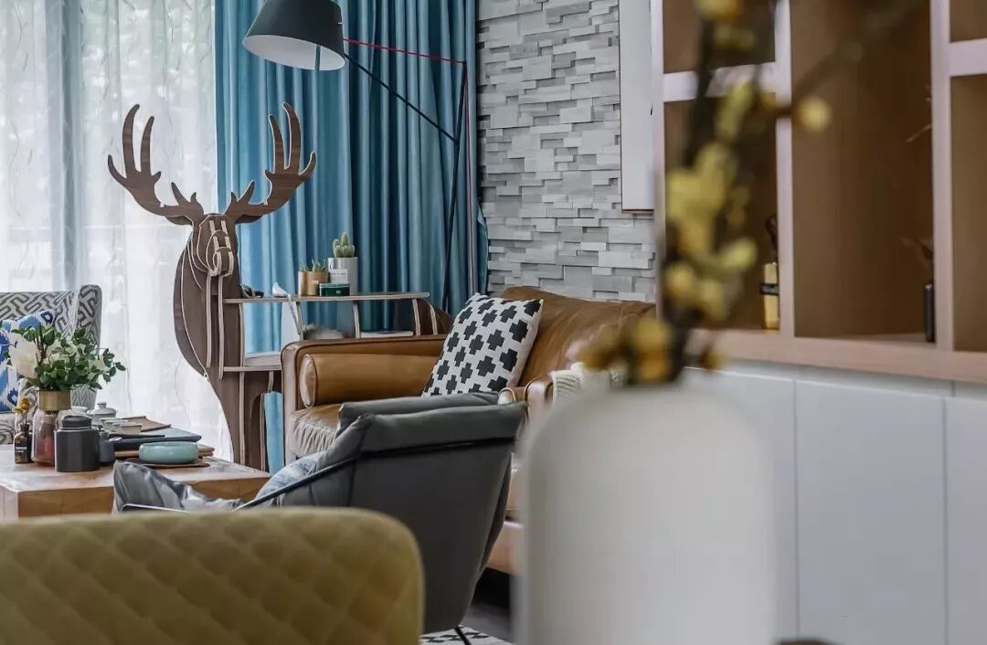 造型独特的麋鹿边几,增加了客厅的趣味性。
