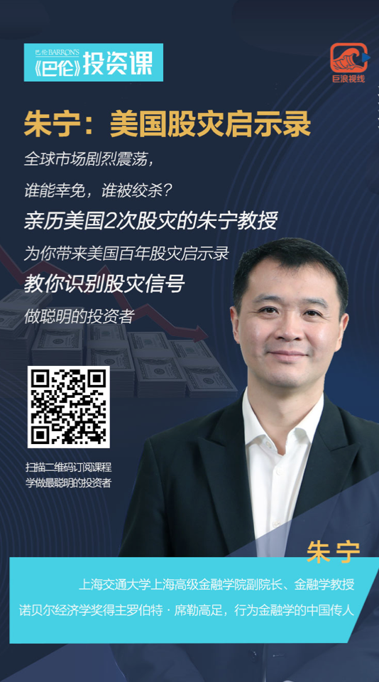 巴伦投资课重磅上线!随着美联储加息方案的出炉,美国股市波动剧烈,投资者人心惶惶,对未来的信心产生了怀疑,到底美股还会波动多久,而我们该如何应对? 我们有幸邀请到上海高级金融学院金融学教授、副院长朱宁开授一堂关于美国股市的课程——《美国股灾启示录》。 这门课程将就股灾谈理性,就投资谈人性,通过回顾美国股市百年风云中的五次典型股灾,去回顾、复盘和分析这些股灾的成因和后果,以及在事后看来可以总结出的投资教训,为中国的投资者提供一种看待金融投资的新视角。现在起,转发海报至朋友圈,集满50赞即可凭借截图添加巴伦V助手(Barrons008)免费获得课程。活动优惠仅限前50名参与者,先到先得。您也可以扫描海报二维码直接进入课程。