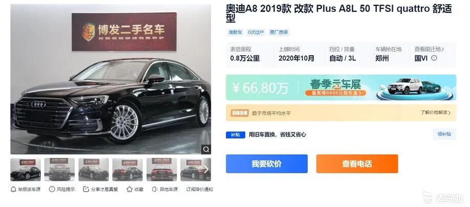 2019款的奥迪A8L 50 TFSI车型二手车售价基本都在这个价位区间,3.0T V6发动机286马力匹配8AT变速箱,参数不高是实话,但它赢在“A8”,德系旗舰D级豪华车走在哪里都是焦点。