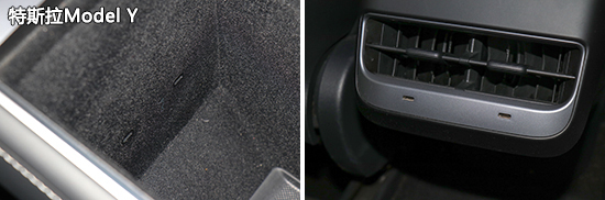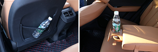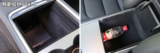 特斯拉Model Y全车储物空间(除杯架外)共计9个,每一处储物槽容积都十分可观,并且细节设计到位。前门板储物槽容积较大,并且内部设置了大面积植绒材质,看上去很有档次感。前排水杯架内部并未配备限位器,这一点略有遗憾。后排门板储物槽与前排相似,容积比较可观。前排座椅后侧还设计有背袋,只不过背袋设计得略紧,仅可以容纳体积较小的物品。此外,后排扶手箱内配有两个水杯架,内部配备了限位器。