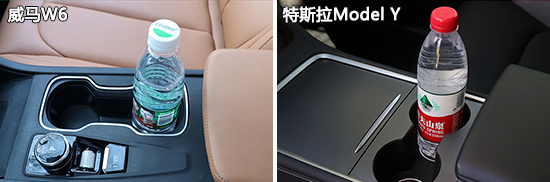 前排中央扶手方面,三款车型均采用皮质材料包裹,质感出色,不过遗憾的是都不支持角度及前后调节,对于驾驶员的适应性差了一些。其中,零跑C11的扶手位置偏低,想要获得充分的支撑就必须主动往上“靠”,舒适性一般。相比之下,威马W6和特斯拉Model Y的扶手位置较高,因而在标准坐姿下能够为驾驶员手肘提供不错的支撑。
