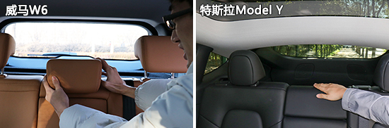 三款车型中,唯有特斯拉Model Y未配备后排中央头枕,对于后排中间乘客的乘坐舒适性以及头部安全会造成一定影响。零跑C11和威马W6均配备后排座椅中间位置头枕,不仅尺寸没有明显“缩水”,内部填充也较为柔软,并且还都支持上下调节,整体表现令人满意。