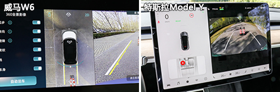 零跑C11搭载了360度全景影像,虽然该影像不支持多角度查看,但是好在屏幕分辨率较高,摄像头素质也不错,因此画质比较清晰,在倒车时能够为驾驶员提供不错的参考。 威马W6全系车型均配备360度全景影像功能,全景影像清晰度不错,提供可随动转向的辅助线,此外还支持2D和3D两种显示模式,以及多达7个视角的实时画面。虽然全景影像画面四周畸变并不严重,但是虚拟车辆底部存在明显的阴影区域,稍有些影响观感。 特斯拉Model Y仅提供了基础的倒车影像功能,配置表现是三款车型中最差的。好在Model Y配备了多个角度的摄像头,仅在车辆前方没有影像画面。影像画面清晰度尚可,而且畸变情况也不严重,实际体验感觉良好。 车辆在日常使用中,经常会遇到在狭窄的道路中转弯或掉头的情况,这个时候车辆的最小转弯半径就显得非常重要了。最小转弯半径是指当转向盘转到极限位置,汽车以最低稳定车速转向行驶时,外侧转向轮的中心在支承平面上滚过的轨迹圆半径。转弯半径越小,则表明汽车的机动性能越好。了解爱车的最小转弯半径大小,在车辆转弯或掉头时能做到心中有数,避免剐蹭等情况发生。经过实测,威马W6的转弯半径为5.12m,零跑C11和特斯拉Model Y的转弯半径分别为5.15m和5.5m。相比之下,特斯拉Model Y的数据在测试过的同级别车型中有些偏大,在调头时要预留较大的空间。
