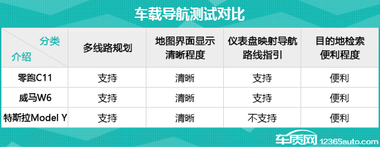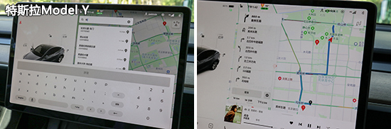 零跑C11与绝大多数造车新势力一样,中控屏主界面就是导航地图,操作起来十分方便。试驾车内置高德导航系统,操作方式与手机类似,并带有联想搜索功能,提升了使用便利性。确认好目的地后,系统会推荐出三条路径可选,点击右上角路线偏好设置,系统还会提供躲避拥堵、高速优先、不走高速以及避免收费四个选项。此外,该导航系统还可以添加“途经点”,功能丰富,使用灵活性更好。 威马W6的导航界面支持拼音与手写两种输入方式,使用键盘输入时,虚拟按键尺寸较大,布局合理。虽然手写输入系统识别率高,反应速度也很快,但是虚拟手写板的初始面积较小,且只有当开始书写后才会自动扩大面积,设计固然新颖,不过日常使用起来并不方便。输入目的地后,系统会根据关键字快速联想出相关目的地信息。点击目的地开始导航后,系统会提供多种路线方案,用户可以根据自身需求选择最适合的方案。 特斯拉Model Y配备的导航系统带有联想功能,不过在确认地点后,导航仅会提供一条路径可选。细节方面,在导航界面左侧会标注有详细的转弯或进/出辅路的指引,实用性很强。此外,在导航设置栏中还提供了避开收费站、车牌限行以及简洁导航播报的选项,驾驶者可根据自身需求进行设置。
