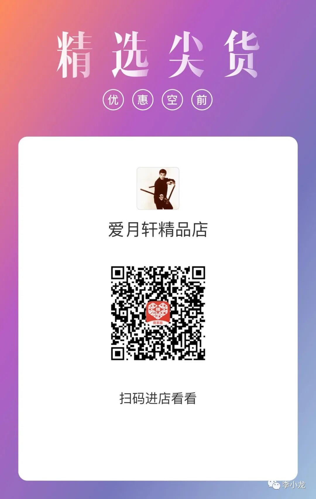 喜欢李小龙就一起来李小龙纪念品商店,每天都有新龙品上架!上百种李小龙相关产品逛不停!更多龙货请扫描下方二维码进店选购!喜欢更多其它龙货请在店内留言!