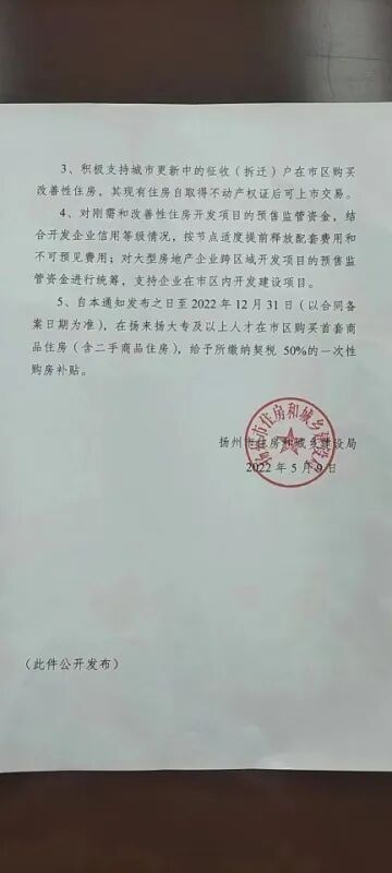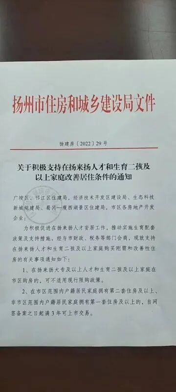 好消息!今天,扬州又出新政,刚刚,扬州市住房和城乡建设局发布文件,释放一系列重磅利好!