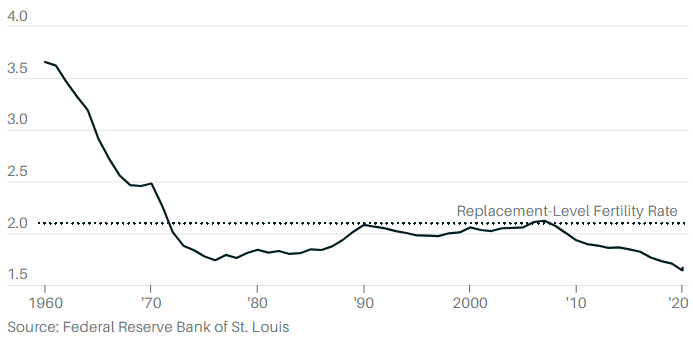 对生育率下降的担忧由来已久。过去几十年,发达国家的出生率一直在下降,但在劳动力市场供应吃紧之际,人口老龄化对美国的影响从未像现在这么严重。