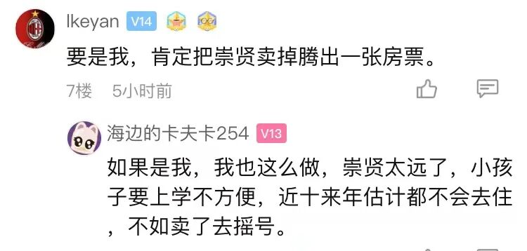 关于楼主提出的方案,大部分网友认为,应该卖掉崇贤的房子,腾出一张房票。
