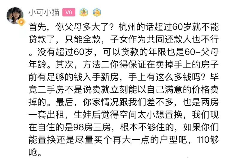 另外,关于楼主想要用父母的房票购房,很多网友认为并不容易,摆在眼前的两个问题: