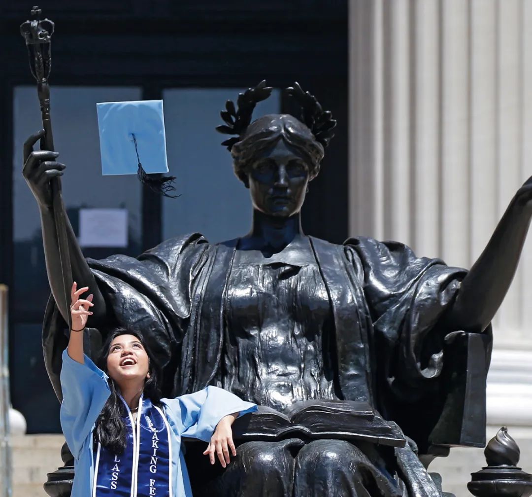 2020年5月20日,美国纽约,哥伦比亚大学即将毕业的学生拍摄毕业照片。(@视觉中国 图)
