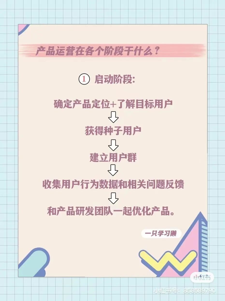 基于不同的产品和阶段,产品运营的工作是不同的。如果是全程跟踪一个新产品,工作的阶段大致都会经历:立项前的产品市场调研➕产品开发前的营销策略植入➕上线时的各种渠道推广➕上线时的核心用户维护➕上线后的数据统计及分析➕产品需求反馈➕各项核心KP的跟进。