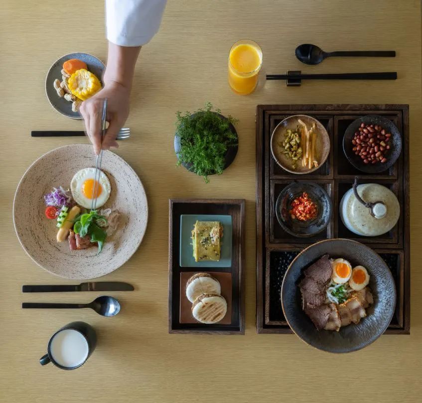 酒店的「食山餐厅」主打高端创意料理,不逊米其林,倡导绿色健康、食在当地的理念,融入精致的摆盘,体验过的人都赞不绝口。Klook的「寻味之旅」住宿套餐包含了双人的9道式晚餐,精致的餐食和美味一定不会让你失望。