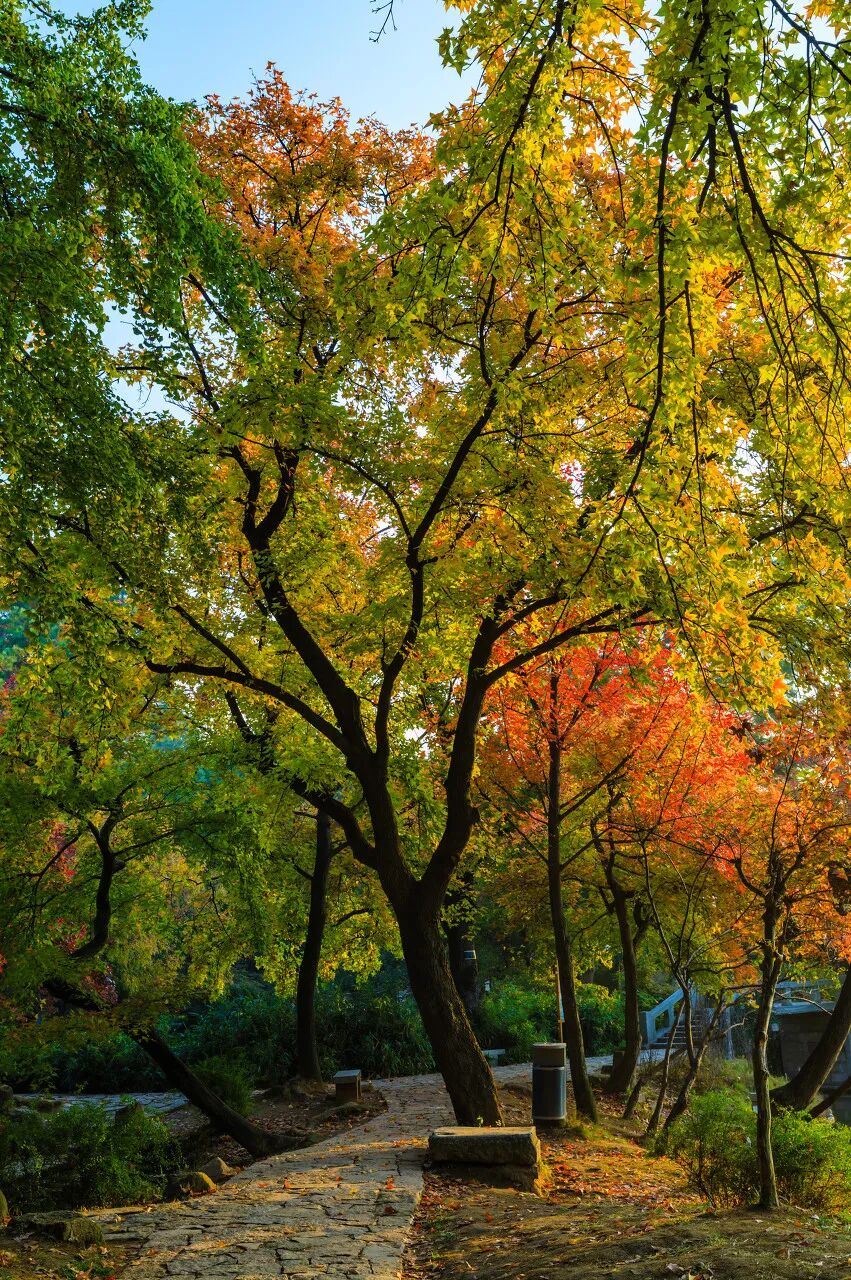 在梦里,园子里秋日的阳光正是温暖,这片银杏和红枫交织而出的秋日图,让世界都变得安静了。