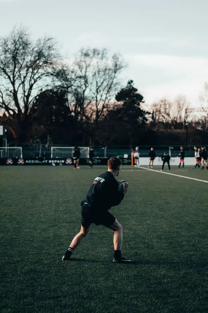接过橄榄球,转身、防守,一套行云流水的动作下来,炫酷热血又超级出片,腰旗橄榄球迅速成为出圈的潮流户外小众运动。