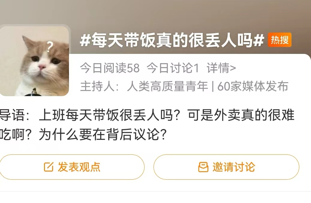 知乎上有个热门话题:每天带饭去上班很丢人吗?