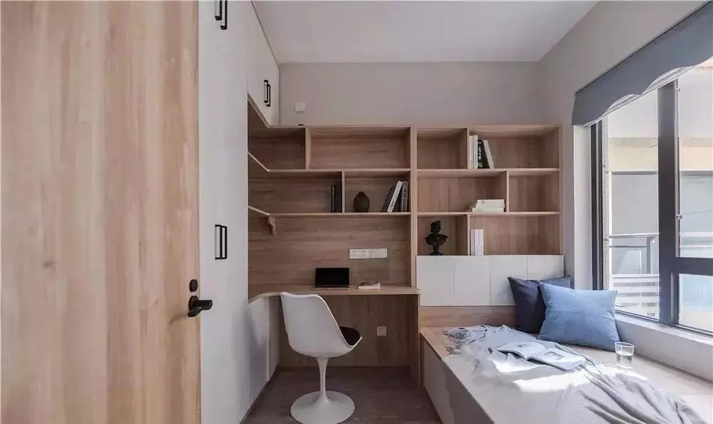 多功能房兼具书房与客卧,内嵌式墙体柜和榻榻米储物空间充分被利用起来,将来可变为儿童房使用