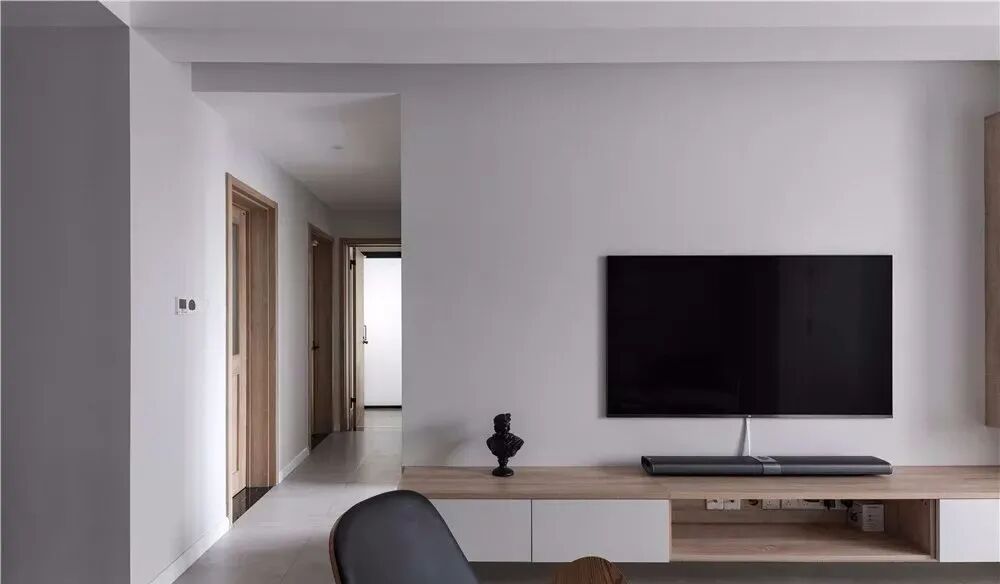 进入私领域动线上的门洞做相应的移位满足房间的正常出入,平面吊顶平整简洁,既保持层高,视觉上也更清爽。