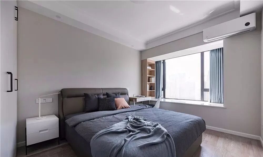 主卧,柔和的墙面色彩搭配现代风实用性家具,以舒适和柔软为出发点,采用自然色系,减少装饰,还原最简单的清爽空间