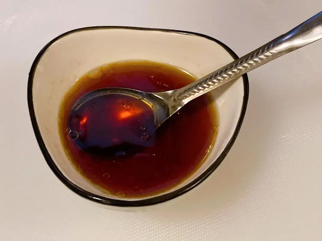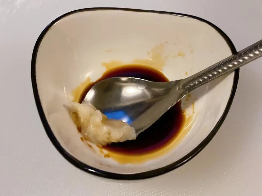 1. 直接用生抽浇蛋羹上显得稍咸了点,取1勺生抽、少许猪油,加开水稀释一下。
