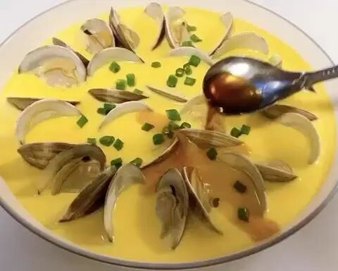 在家也能做出饭店水平的蛤蜊蒸蛋。