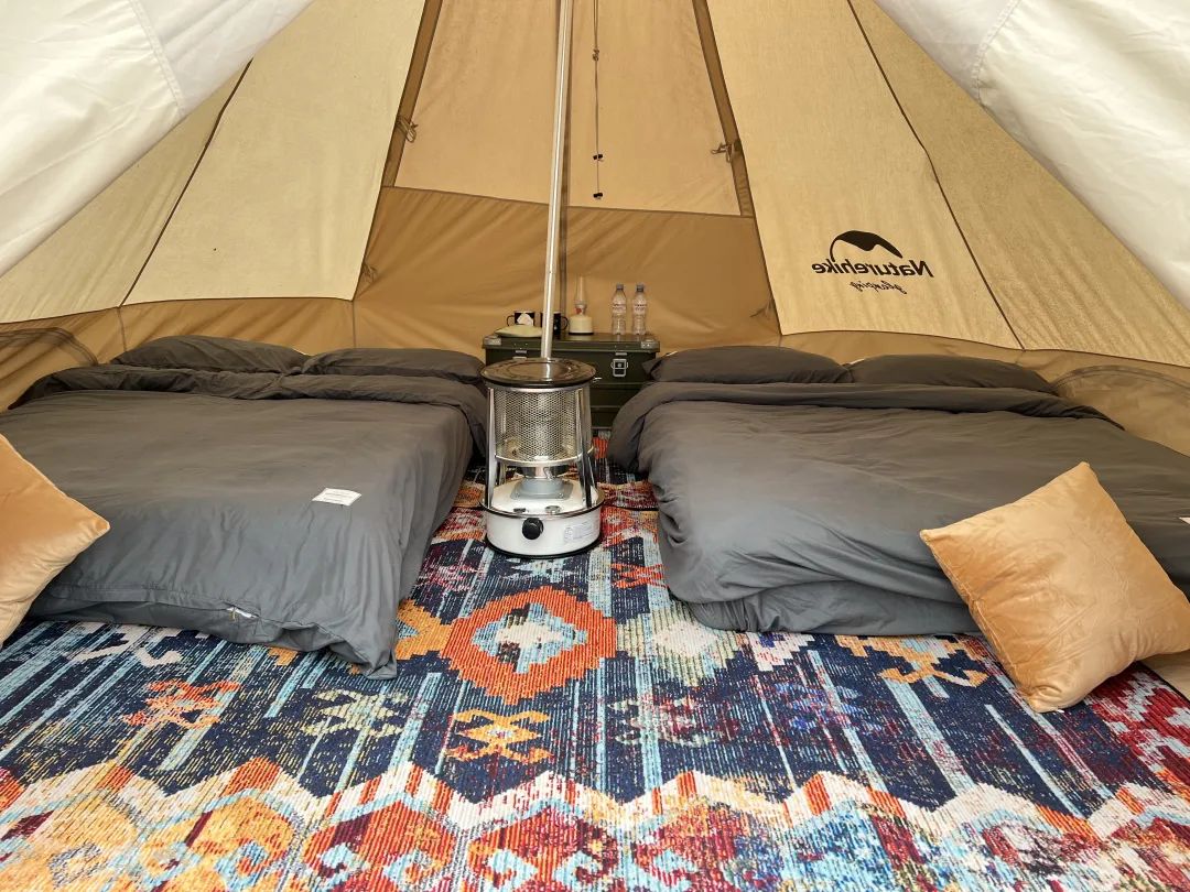 如果你是初次露营的萌新,无需准备繁琐的装备,独立帐篷+小天幕都已就位,洗漱间、卫生间,床铺暖炉热水一概俱全,拎包入住即可!对于有装备基础的进阶玩家,这里也有视野极佳的自由营位,并配有荒野补给站可以解决一些露营消耗品供给。