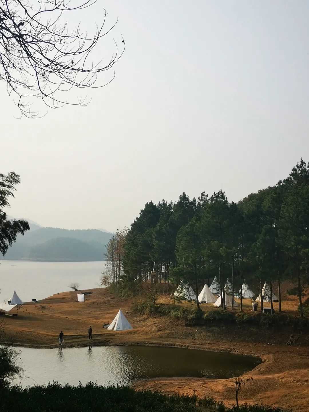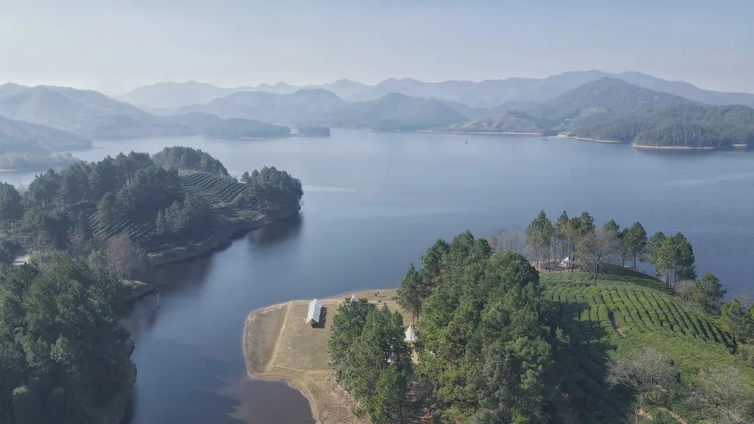 大热荒野小土村营地位于皖、苏、浙三省交界处的姚村镇,它是安徽宣城郎溪唯一山区小镇,紧挨红旗湖,野鸭成群。特别是进入3月后,皖南迎来了大地的春风,茶树、竹林、松树连成一片,整个营地充满了绿意,每一个镜头都腹有诗书气自华的feel,说它是一幅山水画卷真的不夸张。