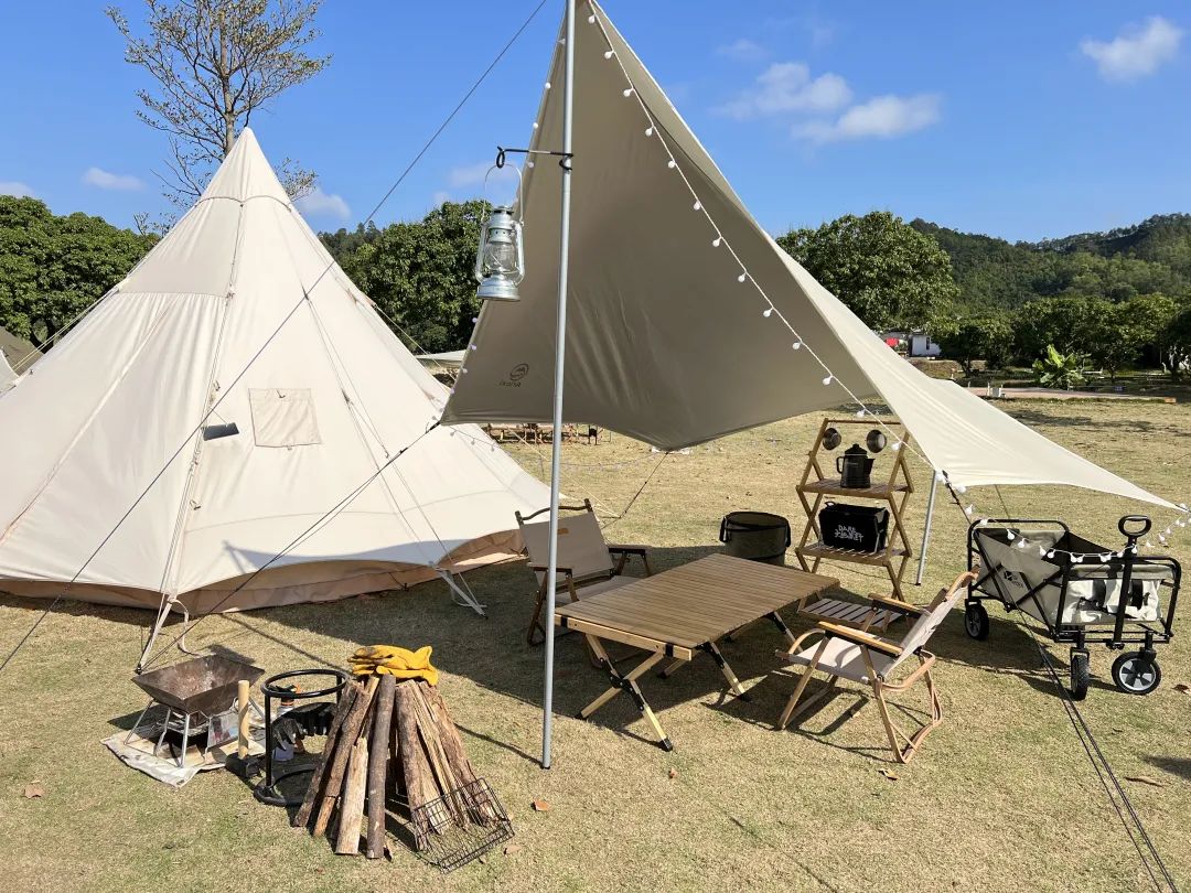 露营的画风也有了突变,不再是辛苦背着帐篷去野地里风餐露宿,天幕、单卷桌、月亮椅、手冲咖啡、蓝牙音响……“搬家式”露营,比在度假酒店还精致!