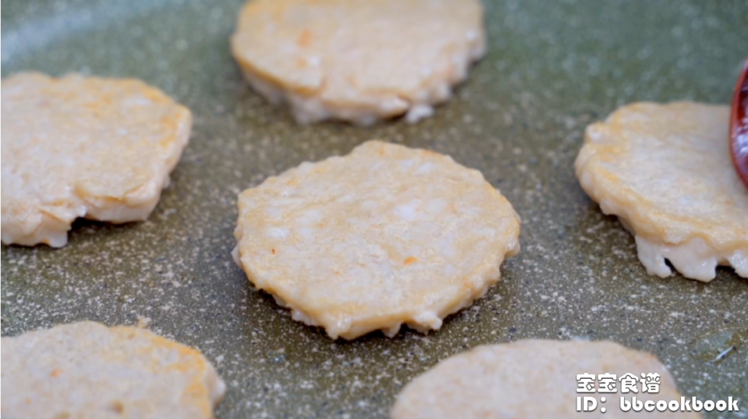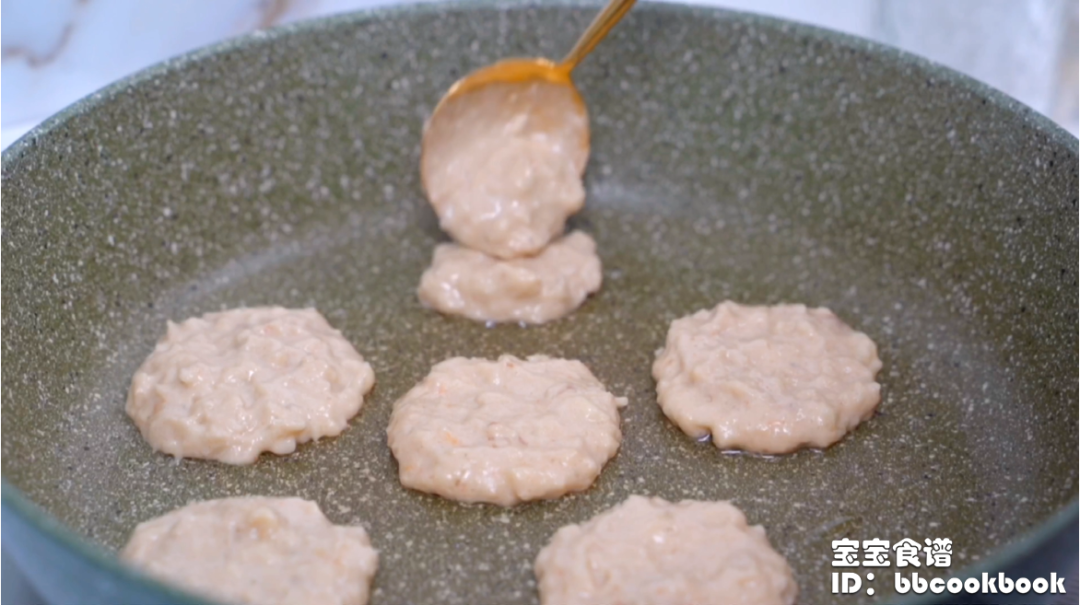 Step3:平底锅小火刷油,把莲藕泥摊成小饼