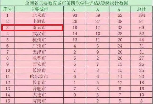 整体高教水平仅次于北京和上海,全市一共19个A+学科、17个A类学科、33个A-学科,全国性的科教重镇就在这里