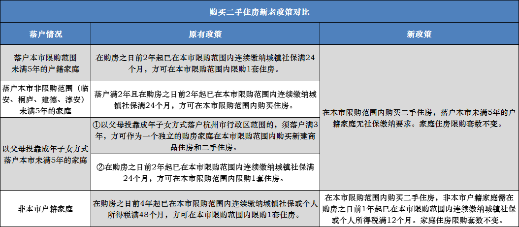 杭州主要是放松了二手房限购政策,只要落户就能直接买