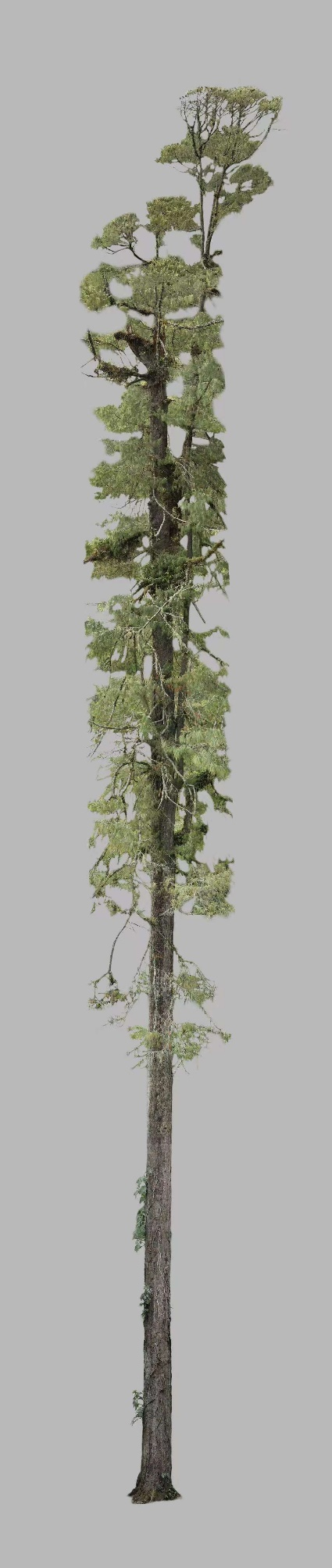 经过为期10天的实地考察、数据采集与处理工作,研究团队获取了所测量巨树的精细三维点云数据,并采用无人机获取照片拼接成巨树等身照,最终发现了这棵高达76.8米的不丹松巨树。除此之外,他们还采用无人机悬吊测绳及卷尺测量等方法,对该树进行了高度和胸径验证,并记录下详细的数据。