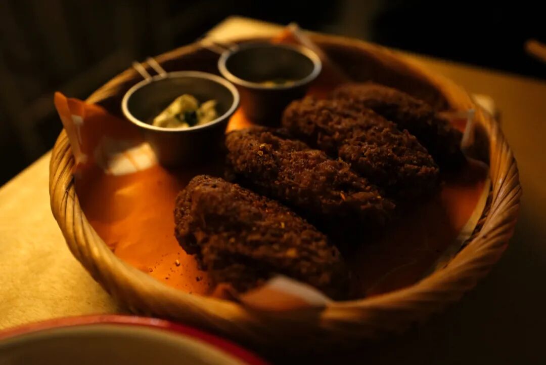 烫口多汁的鸡翅棒棒糖,炸得极酥脆的干身虾酱五花肉,以及无法拒绝的暴击炸午餐肉,恍惚间又忆及坡县的Roketto Izakaya,把日式元素与坡县风味结合的Mod-sin鼻祖,啊啊啊啊啊!